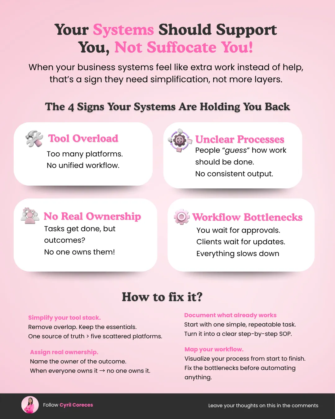 We fix leaks, simplify systems, and strengthen your growth foundation.